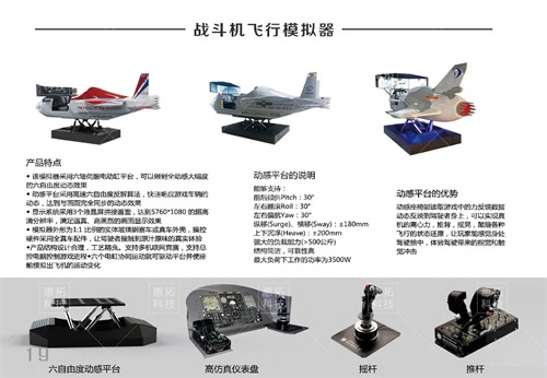 戰(zhàn)斗機(jī)飛行模擬駕駛:可對(duì)飛行技巧知識(shí)進(jìn)行模擬訓(xùn)練,并可對(duì)駕駛技術(shù)進(jìn)行考核,飛行科目下的“翻滾”等科目進(jìn)行體驗(yàn),提升飛行的娛樂性,讓體驗(yàn)者親切感受飛行,應(yīng)用鄰域:航校、展館、飛行體驗(yàn)館、科技館、高職院校等。